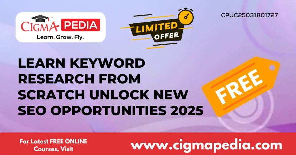Learn Keyword Research From Scratch Unlock New SEO Opportunities 2025 (Free Udemy Course) : Carry out an in-depth keyword research: from the brainstorming ideas to clustering and placing the semantics Also Check : Marketing Work From Home Part Time Internship by Cryptop How to Get this ...