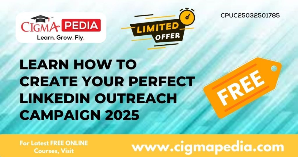 Learn How to Create Your Perfect LinkedIn Outreach Campaign 2025 (Free Udemy Course) : Unlock LinkedIn’s Potential: Master Lead Generation and Sales Success Also Check : Graphic Design Work From Home Part Time Internship by The Political Architects How to Get this course for FREE ? ...