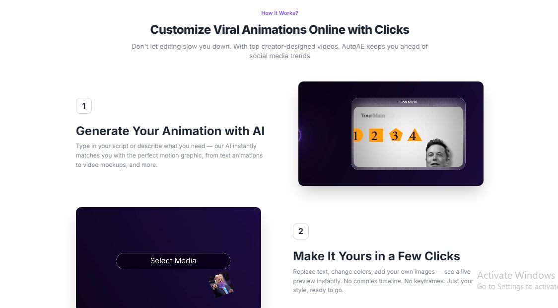 Solution: Auto AE removes the need for keyframes and timelines, allowing users to create professional animations through a simple “click and customize” interface.