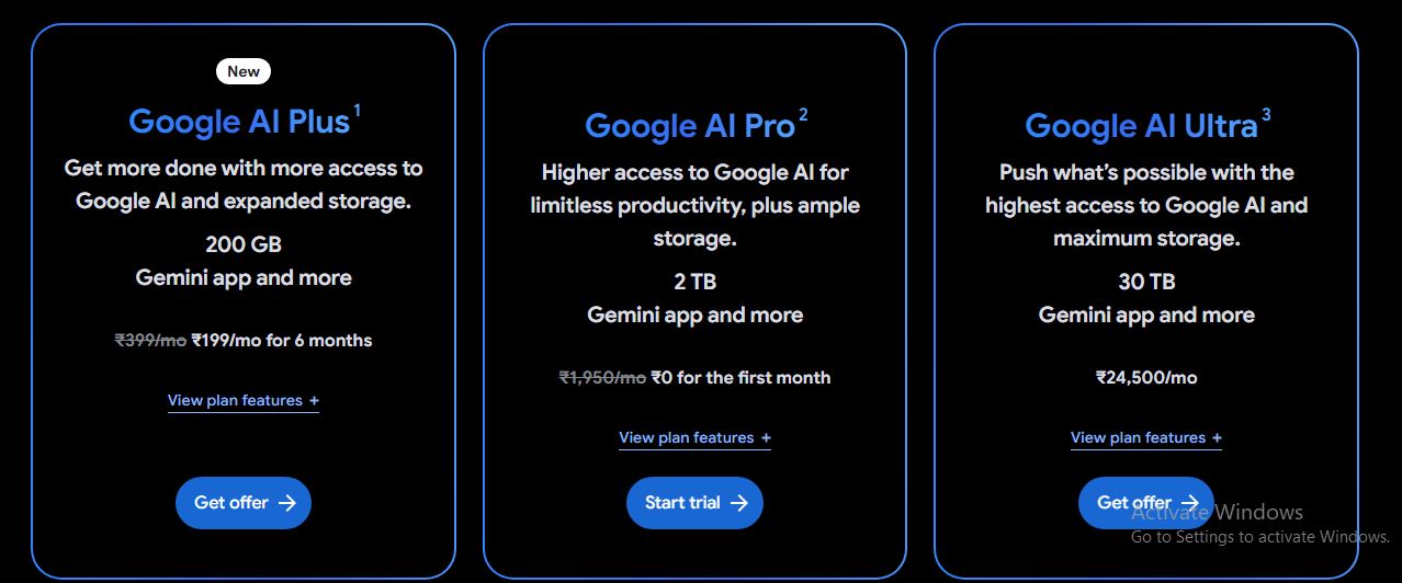 - Free Tier ($0): This is the default plan for all users. It provides free access to Gemini 1.5 and 2.5 models with daily rate limits. In this tier, data may be used by Google to improve its models.