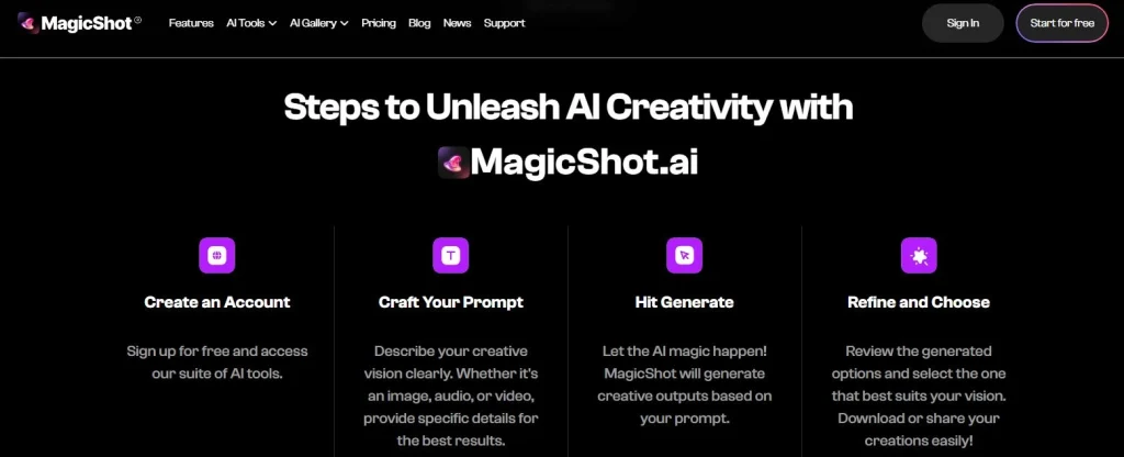 Magicshot: Revolutionizing Video Creation with AI MagicShot AI is an innovative platform designed to transform creative ideas into stunning visuals, videos, and audio using cutting-edge artificial intelligence. Whether you’re a designer, marketer, or casual user, MagicShot simplifies content creation with features like text-to-image generation, avatar creation, and advanced photo editing tools. Its versatility makes it a go-to solution for professionals and hobbyists alike