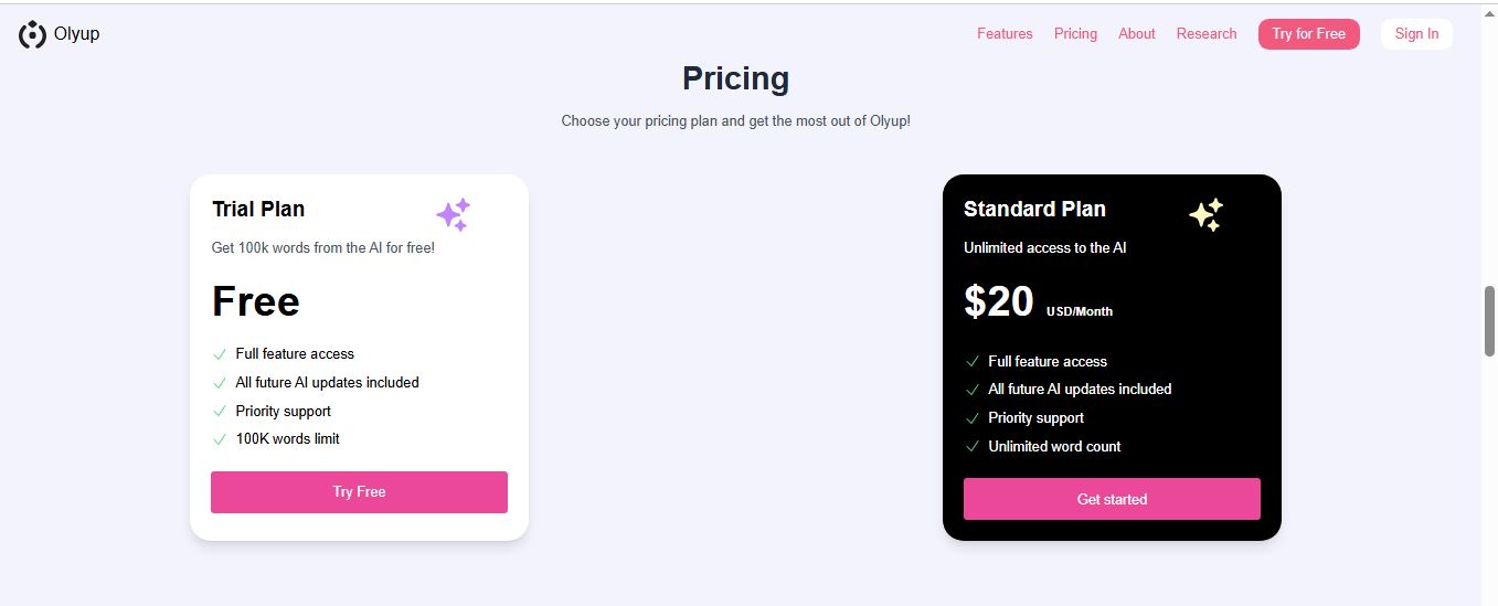 Olyup offers flexible pricing for individuals, small businesses, and enterprises: