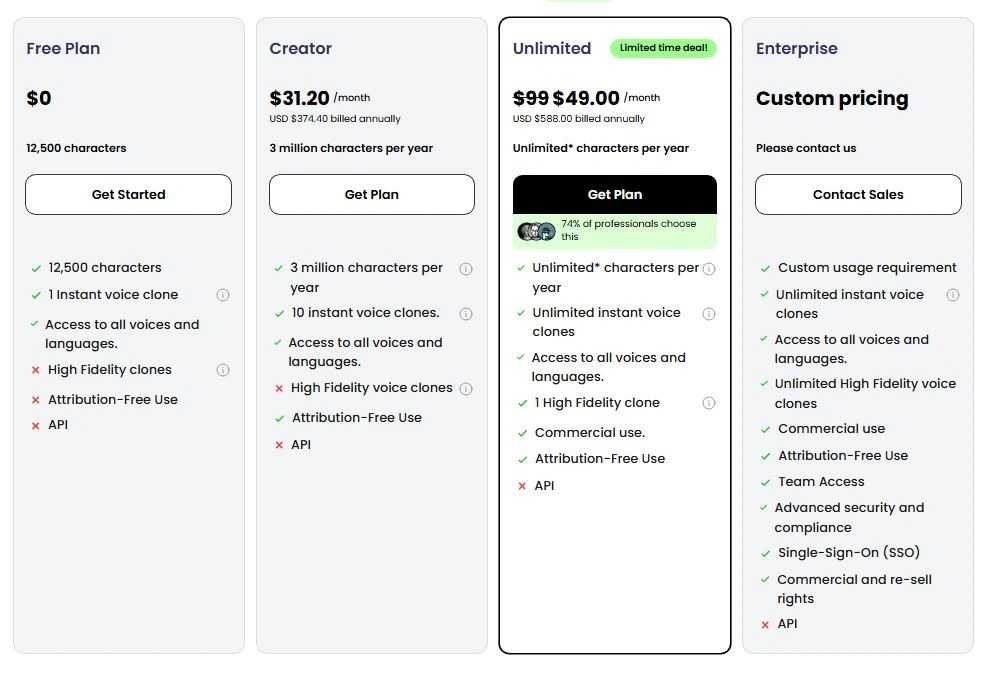 Solution: Playht offers affordable pricing plans compared to hiring voice actors or recording studios