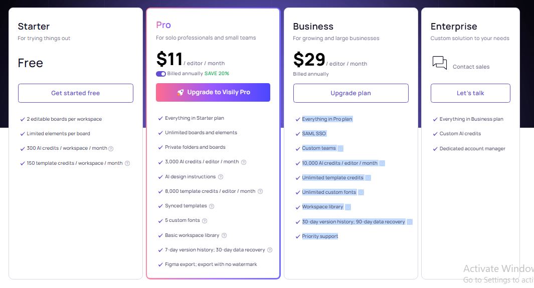 Visily offers a tiered structure to support everyone from solo founders to large enterprises: