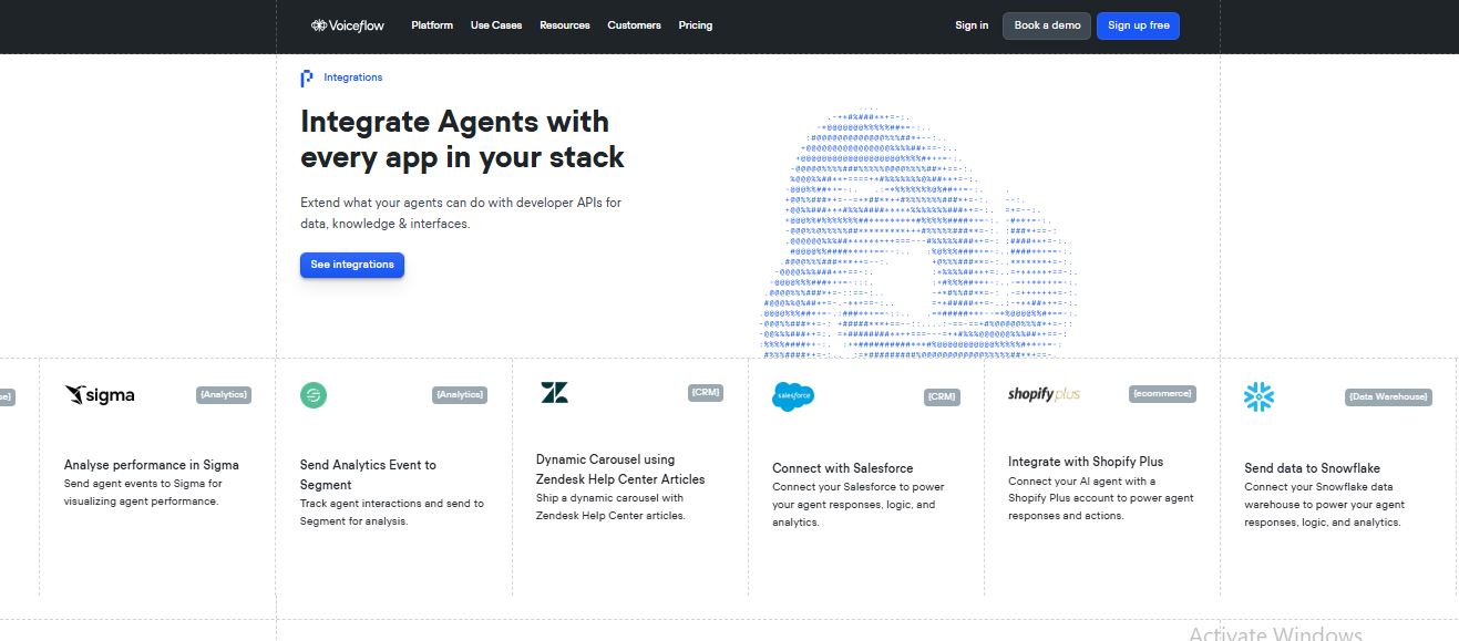• Omnichannel Deployment: You can build an agent once and deploy it everywhere. Voiceflow supports web chat widgets, mobile apps, and even sophisticated voice agents for phone calls through integrations like Twilio or Vapi.